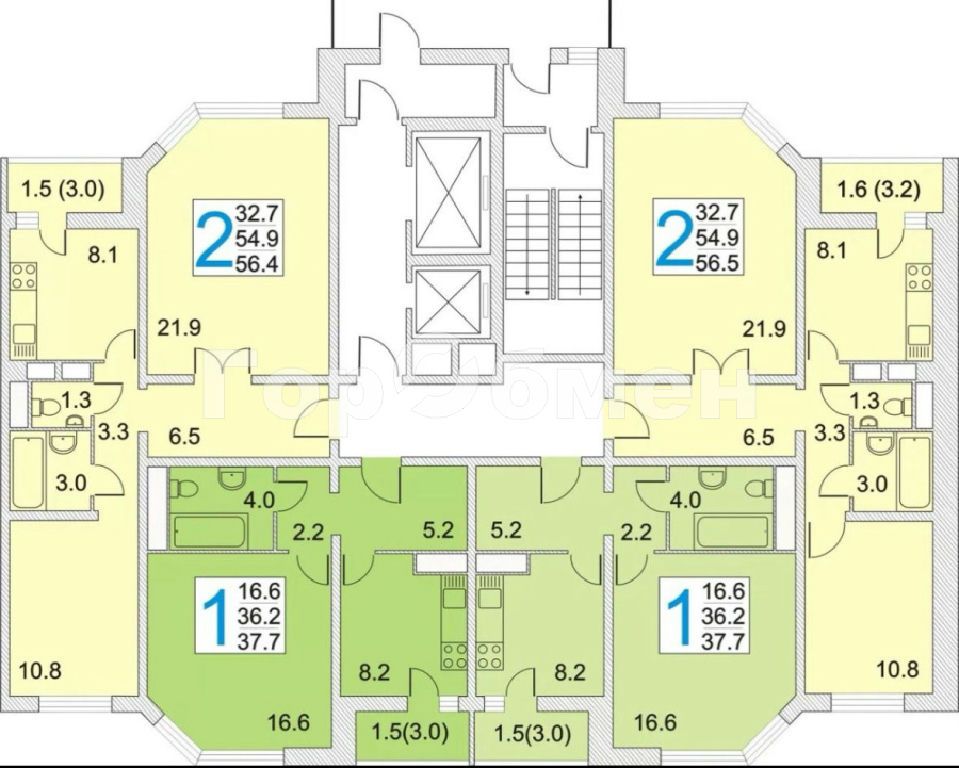 Общая площадь 55 кв. м