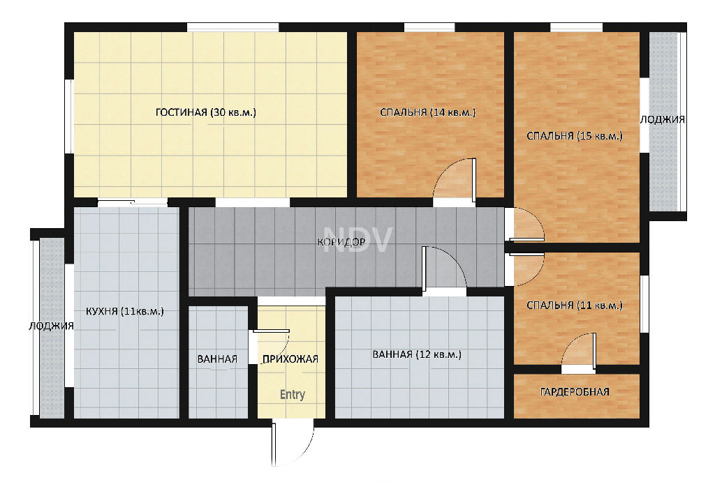 два полноценных санузла (один при входе, второй просторный, с окном);